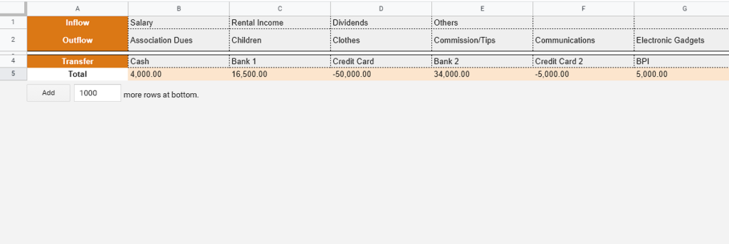 If you plan on tracking your budget, you should then have a list of Inflow Accounts, Outflow Accounts, Transfer Account. Here’s a sample list to get you started: