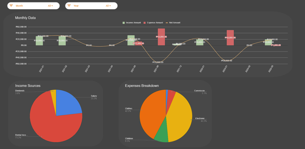 It includes chart summaries, and you are also free to customize your inflow, outflow, and account items.
